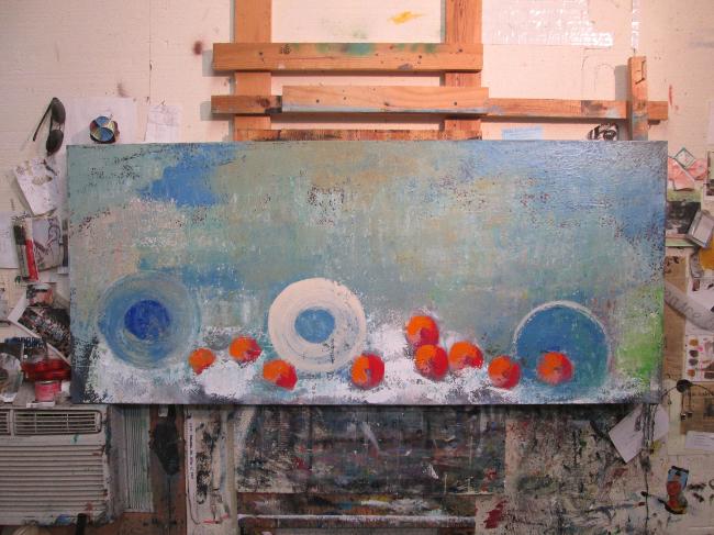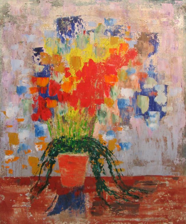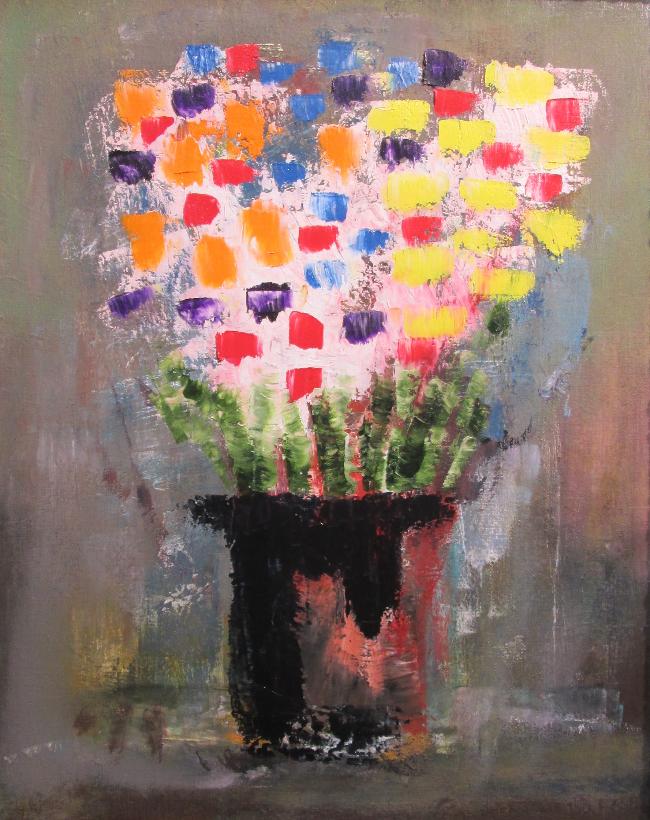 Bottom: Flowers in Clay Pot, acrylic on canvas, 30"x24", 2017