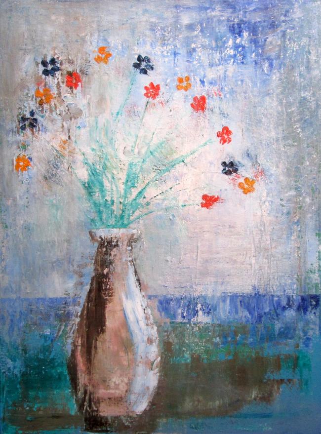 Below: Blue Vase, Ochre Walls, one of my flower works currently at Edenside Gallery, Louisville, 30"x30"